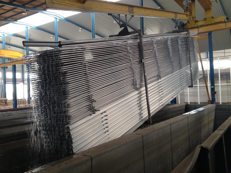 5. Secado aire caliente: La última fase del pretratamiento con el fin de retirar cualquier sustancia de las fases anteriores y preparar el aluminio para la siguiente fase en las más óptimas condiciones.